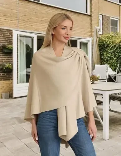 PULI Ayollar uchun katta o'lchamdagi o'ralgan old pancho kozok ro'mol pelerina kuz va qish oylarida nafislik va qulaylikni birga taqdim etadigan oqlangan variantdir. Ushbu ko'p qirrali kiyim nafaqat zamonaviy, balki har qanday o'lcham va tana tipiga juda mos keladigan dizaynga ega. Qanday kichkina yoki katta o'lchamda bo'lishingizdan qat'i nazar, bu pancho sizga ajoyib ko'rinadi. Yelkadan etekka 81 sm uzunlikdagi bitta o'lchamli dizayni tufayli u turli xil tana o'lchamlariga osongina moslashadi. Yumshoq va sifatli ikki qavatli trikotaj mato ko'pgina trikotajlarga qaraganda qalinroq va tuzilgan toplarni yaratish uchun ideal. Mato qattiq, silliq va elastik bo'lib, ajinlanishga chidamli qiladi. Sayohatlarda yoki kundalik foydalanishda garderobingizning ajralmas qismiga aylanishga nomzod. O'ralgan old dizayni va yelkadagi halqa yoki tugma detali ro'molni bir uchini ichkariga tiqib qo'yib, joyida ushlab turadi. Bu xususiyat kiyimdan qulay foydalanishni ta'minlaydi. Xavfsizroq ushlash uchun broshdan foydalanish ham tavsiya etiladi. Tartibsiz egri etek qirrasi san'atkorona burmalar hosil qilib, zamonaviy ko'rinish beradi. Ushbu pancho pancho, ro'mol, pelerina, kardigan yoki sharf sifatida ishlatishingiz mumkin bo'lgan ko'p qirrali buyumdir. Yil davomida trend bo'lgan ushbu uslub, salqin havoda ustingizga tashlab qo'yib, qo'shimcha issiqlik berishingiz mumkin. Jinsilar va etiklar bilan kundalik ko'rinishga erishishingiz mumkin, shuningdek, uzun ko'ylak bilan ham nafisligingizni to'ldirishingiz mumkin. Kiyish oson va hamma narsaga mos keladi. Onalar kuni uchun yoki turmush o'rtog'ingiz, onangiz, buvingiz, qaynonangiz uchun ajoyib sovg'a bo'lishi mumkin. Ushbu ro'molni xorijiy sayohatlaringizda adyol o'rniga yoki yozning salqin kechalarida ko'ylagingiz ustidan tashlab ishlatishingiz mumkin. Ofis muhiti, salqin ichki makonlar, kruizlar va boshqa barcha kiyimlaringiz bilan mukammal mos keladi.