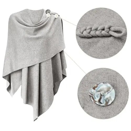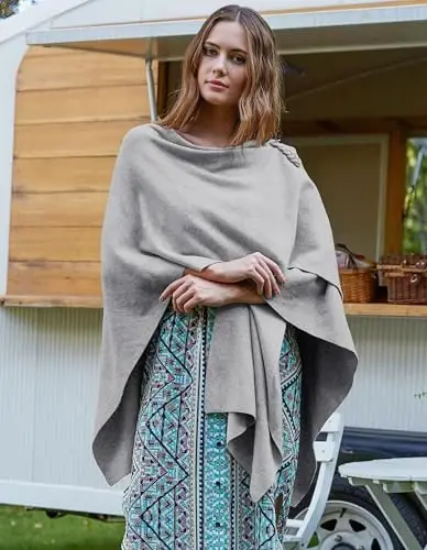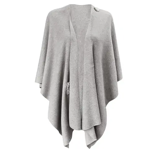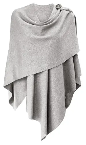 PULI Women's Plus Size Wrap Front Poncho Sweater Shawl Wrap is an elegant cape knitted for Autumn and Winter months. It is designed as one size and is 81 cm long from shoulder to hem. Not only is it chic and elegant, but it also looks incredibly flattering on every body size and shape. Whether you are petite or plus size, this poncho will look great on you. Thanks to its soft fabric, double knit fabrics are thicker than most knits and are perfect for creating structured tops. The fabrics are stiff, smooth and elastic, so they are wrinkle-resistant and are sure to become an indispensable part of your wardrobe when packing. With its versatile design, you can tuck one end in thanks to the cross front and loop or button on the shoulder. This detail keeps the shawl in place and makes it comfortable to wear, and we also recommend using a brooch to secure it. The irregular curved hem creates artistic drapes. This poncho is a very stylish and versatile piece that you can wear as a poncho, shawl, cape, cardigan or scarf. You can wear this style, which is fashionable all year round, over a light long-sleeved shirt for extra warmth. You can dress it up with jeans and boots or dress it down with a long dress. It is easy to wear and goes with everything. It can be a nice gift for Mother's Day, as well as daily gifts for ladies, wives, mothers, grandmothers and mothers-in-law. You can take this shawl on a trip abroad instead of a blanket, and you can also use it as a wrap for cool summer nights or for a cool summer night. It is the ideal weight for office, indoor coolness, cruise and other outfits.