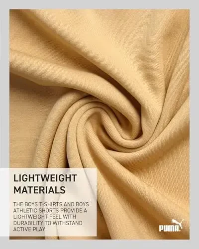 PUMA Boys Active Shorts Set - 2 Piece Dry Fit T-Shirt and Performance Gym Shorts ile çocuğunuzun aktif yaşamına enerji katın. Resmi lisanslı bu PUMA erkek çocuk spor giyim seti, mükemmel bir atletin değerlerinden ilham alınarak tasarlanmıştır: cesur olun, kendinize güvenin, kararlı olun, neşeli olun, PUMA olun! Bu iki parçalı set, hem şık hem de fonksiyonel bir seçenek sunarak, çocuğunuzun spor yaparken veya günlük aktivitelerinde rahat ve özgür hissetmesini sağlar. Dry Fit teknolojisi sayesinde ter hızla emilir ve buharlaşır, böylece çocuğunuz gün boyu serin ve kuru kalır. İster basketbol sahasında olsun, ister antrenmanda veya evde dinlenirken, bu eşofman takımı ona eşlik edecek. PUMA'nın bu aktif giyim seti, yüksek performanslı tasarımı ve konforlu yapısıyla çocuğunuzun spor ve eğlence dolu günlerine mükemmel bir şekilde uyum sağlar. Dayanıklı malzemelerden üretilmiş olup, uzun ömürlü kullanım sunar. Çocuğunuzun gardırobuna ekleyeceği bu şık ve pratik set, ona hem sportif bir görünüm kazandıracak hem de hareket özgürlüğü sağlayacaktır. PUMA kalitesi ve şıklığı ile tasarlanan bu set, çocuğunuzun aktif yaşam tarzını desteklemek için ideal bir seçimdir. Gün boyu süren konfor ve performans için PUMA Boys Active Shorts Set'i tercih edin ve çocuğunuzun spor yaparken veya oyun oynarken en iyi halini ortaya çıkarmasına yardımcı olun.