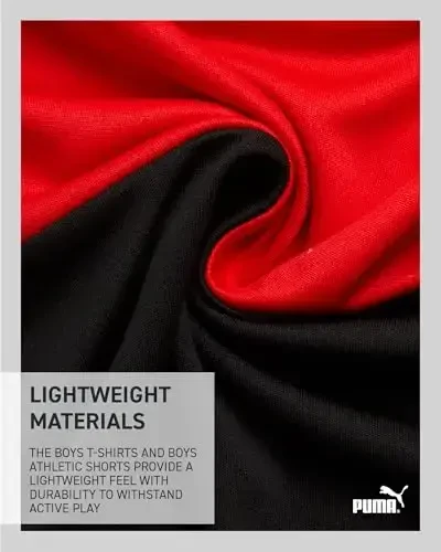 PUMA Erkek Çocuk Aktif Şort Takımı - 2 Parça Dry Fit Tişört ve Performans Gym Şortu - Erkek Çocuklar için Aktif Giyim Seti (4-16), aktif oğlunuz için mükemmel bir kıyafettir. Bu set, hem konfor hem de performans için tasarlanmış bir dry fit tişört ve performans gym şortu içerir. Tişört, çocuğunuzu herhangi bir aktivite sırasında serin ve kuru tutacak hafif, nefes alabilen bir kumaştan yapılmıştır. Şortlar da hafif, nefes alabilen bir kumaştan yapılmıştır ve rahat ve güvenli bir uyum için elastik bir bel bandına sahiptir. Bu aktif giyim seti, basketbol oynamaktan oyun alanında koşmaya kadar her türlü spor veya aktivite için mükemmeldir.