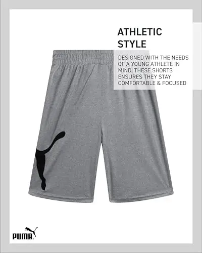 PUMA Boys Athletic Shorts - Quick Dry Breathable Interlock Performance Boys Basketball Shorts with Pockets (Sizes: 4-20)