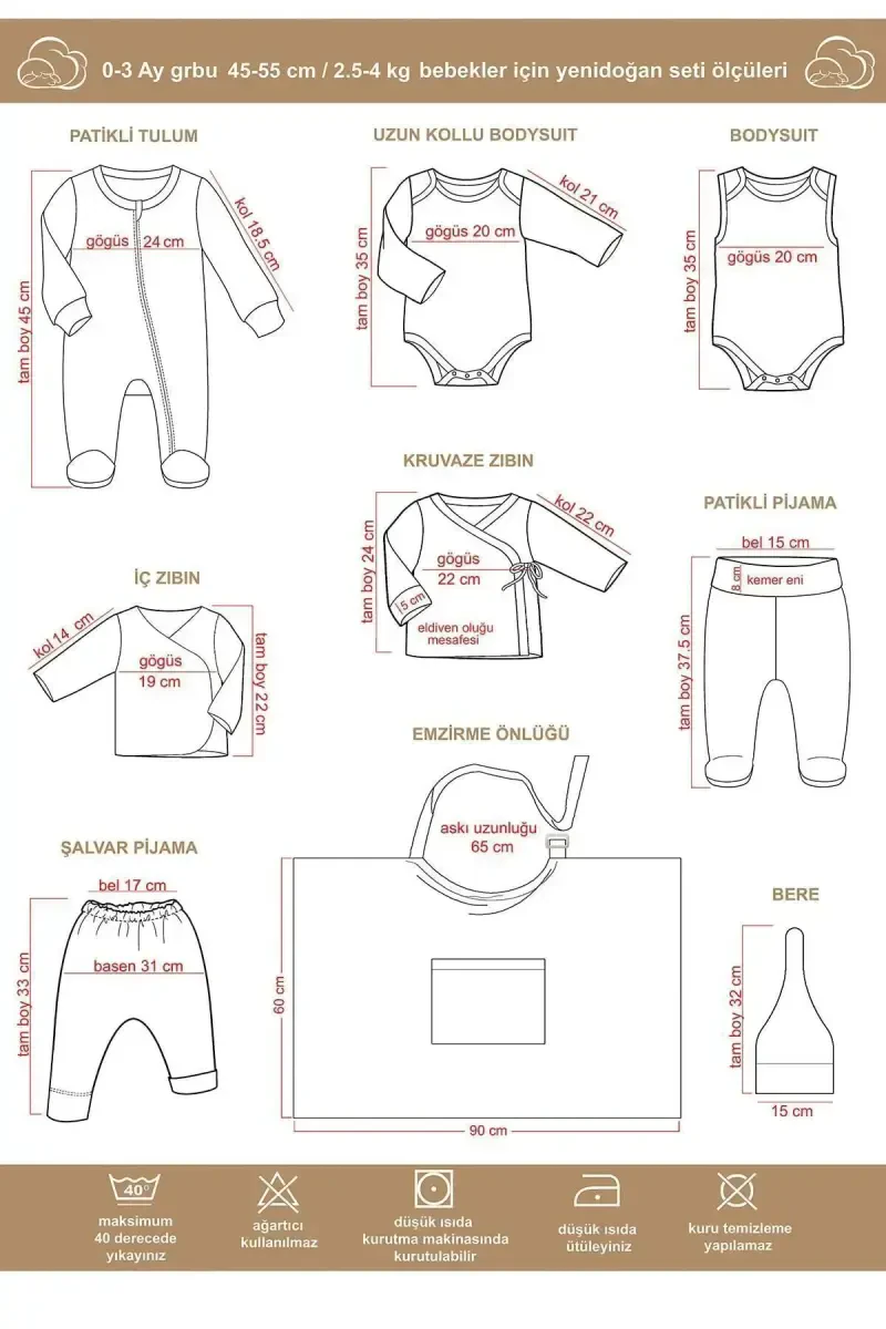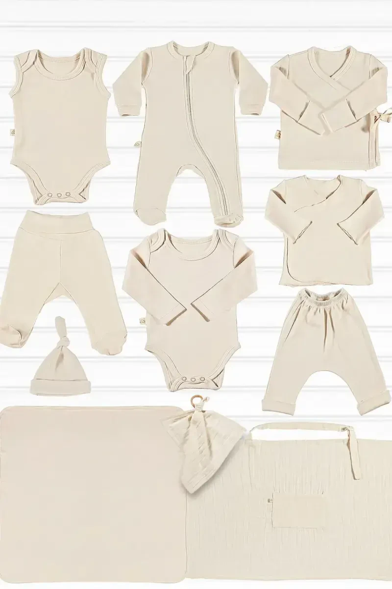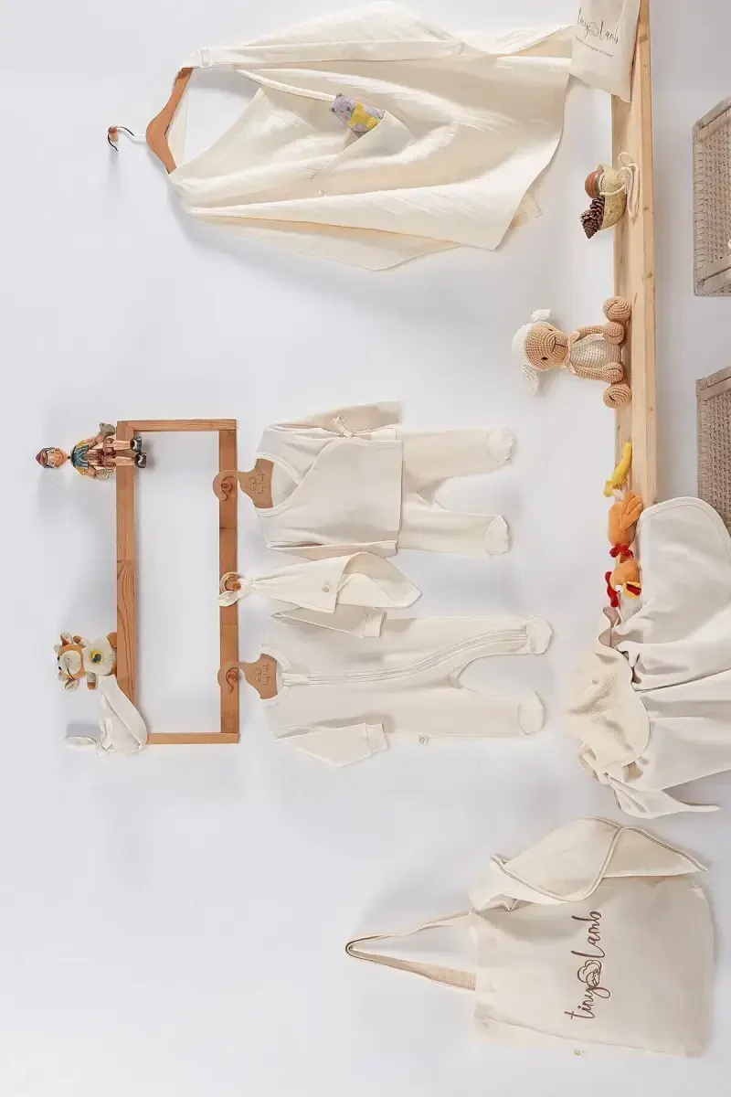 Pure 11 Parça Hastane Çıkışı Seti, minik bebeğinizin hassas cildine özel olarak tasarlanmış, %100 organik pamuktan üretilmiş eşsiz bir settir. Ham pamuk rengi ve unisex tasarımı sayesinde hem kız hem de erkek bebekler için idealdir. Doğumdan itibaren bebeğinizin gardırobunun vazgeçilmez bir parçası olacak bu set, içeriğindeki temel parçalarla tüm ihtiyaçlarınızı karşılar. TinyLamb güvencesiyle sunulan bu set, kampanya fiyatıyla bütçenizi de düşünür. Ürünün dokuma kumaşı, uzun ömürlü ve dayanıklı bir kullanım sunarken, sık yıkama koşullarına karşı direnç gösterir. Bu sayede bebeğinizin kıyafetleri her zaman ilk günkü gibi kalır. Aynı zamanda bu set, evdeki rahat anlarınız için özel olarak tasarlanmış Homewear koleksiyonunun bir parçasıdır. Bebeğinizin ev giyiminde konforu ve şıklığı bir arada sunar. 11 parça içeriğiyle ihtiyacınız olan her şeyi tek bir pakette bulabilirsiniz. Bu pratik ve ekonomik çözüm, özellikle yeni ebeveynler için büyük kolaylık sağlar. Doğal renk tonlarındaki ham pamuk rengi, sade ve şık bir görünüm yaratırken, her türlü bebek odası dekorasyonuyla mükemmel uyum sağlar. Çizgili deseni, zamansız bir stil sunarak bebeğinizin kıyafetlerine canlılık ve dinamizm katar. Pure 11 Parça Hastane Çıkışı Seti, organik sürdürülebilirlik ilkesiyle üretilmiştir. Bu sayede hem bebeğinizin sağlığını korur hem de çevreye duyarlı bir seçim yapmış olursunuz. Bebeğinizin hassas cildine zarar verecek hiçbir kimyasal madde içermez. Bu nedenle gönül rahatlığıyla kullanabilirsiniz. Ayrıca, ürünün unisex tasarımı, birden fazla bebek sahibi olmayı planlayan aileler için de avantajlı bir seçenektir. Set içeriğindeki parçalar, bebeğinizin büyüme sürecine uyum sağlayacak şekilde tasarlanmıştır. Böylece uzun süre kullanabilirsiniz. Pure 11 Parça Hastane Çıkışı Seti ile bebeğinizin konforunu ve şıklığını bir araya getirin. Hem bebeğiniz hem de sizin için en iyisini seçin. Organik pamuktan üretilmiş bu özel set, bebeğinizin sağlığına ve konforuna verdiğiniz değeri gösterir.