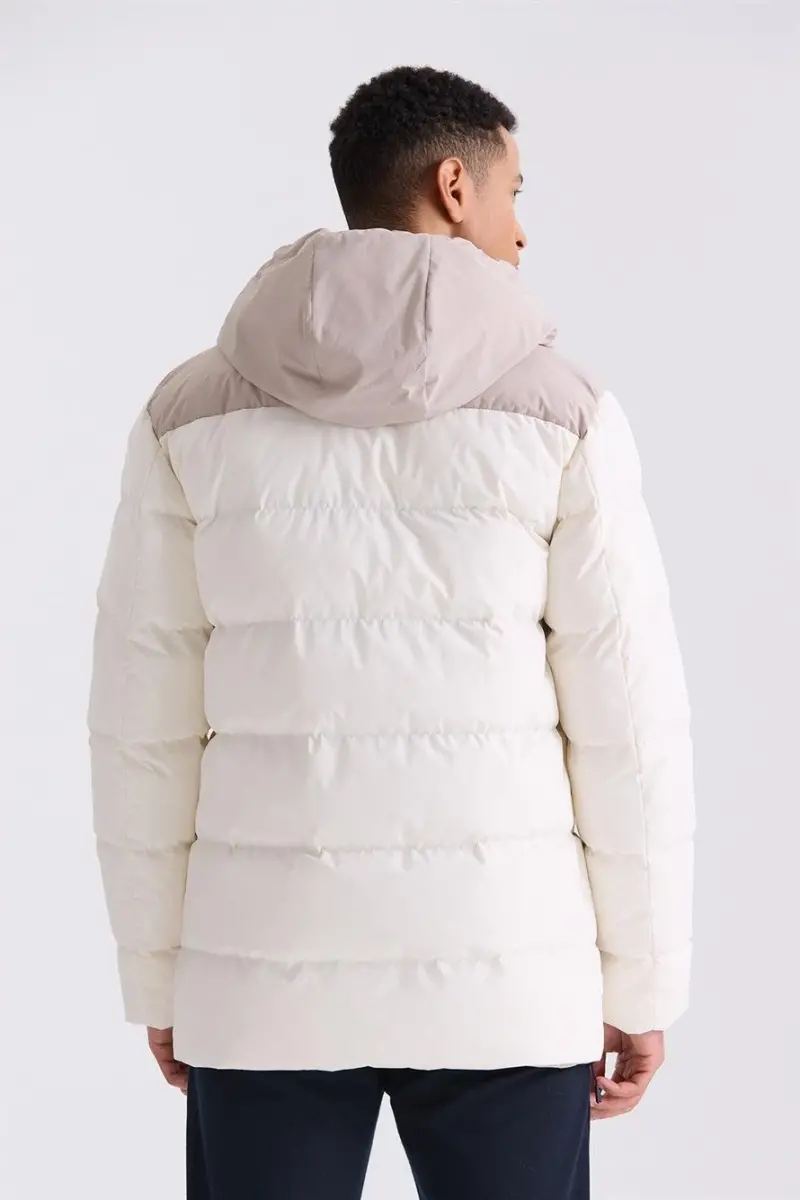 Пуховик бежевого цвета Comfort Fit с капюшоном и карманами: стильно и тепло в холодную погоду