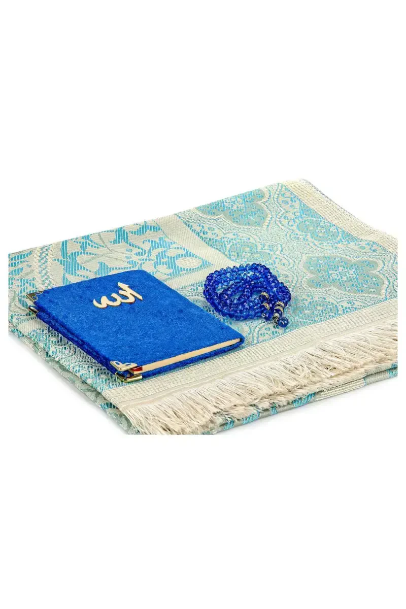 PVC qutidagi namoz gilami to‘plami, kadife namoz gilami, Yosin kitobi, tasbeh, maxsus kun uchun sovg‘a