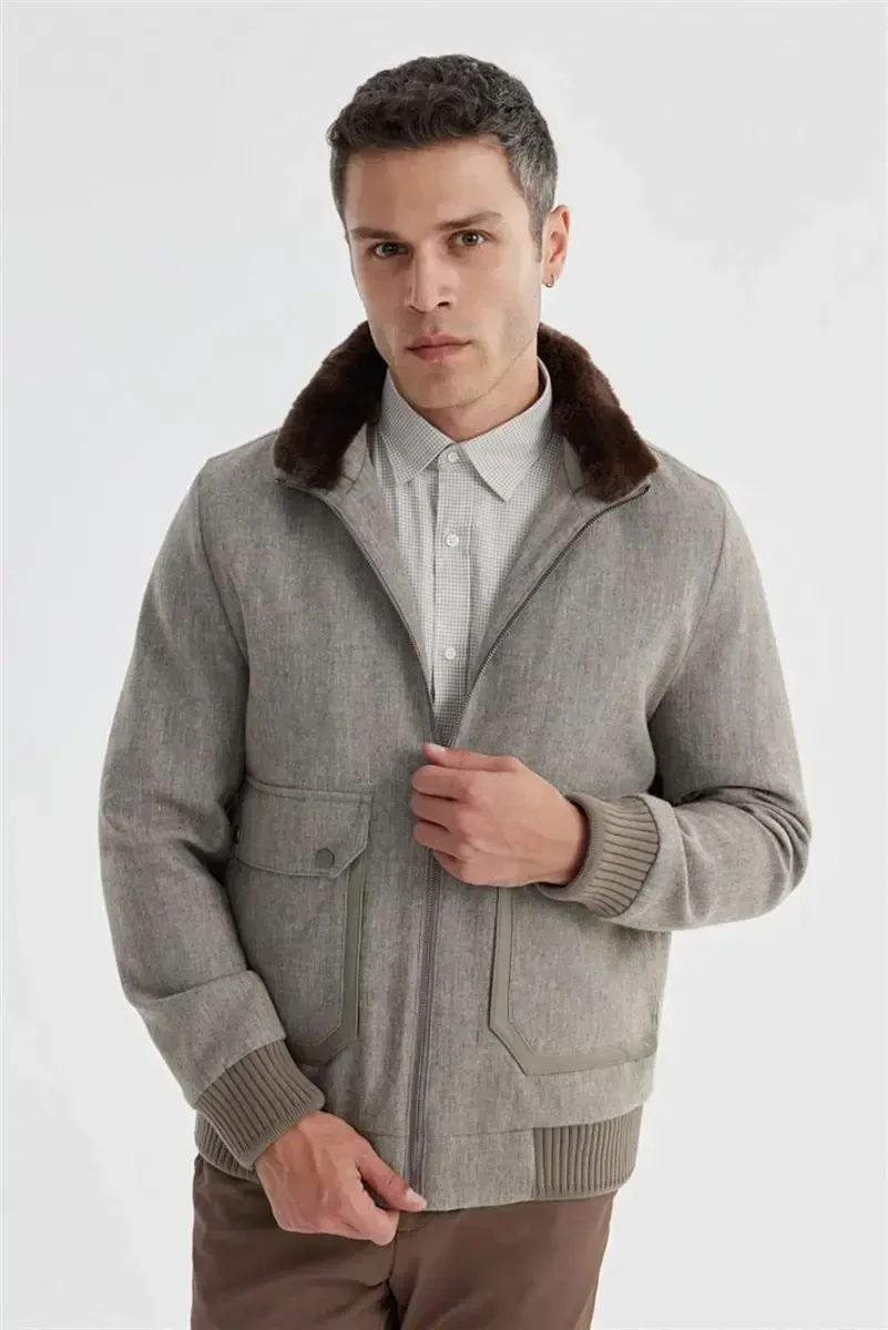 Qahva rangli Comfort Fit'li mo'ynasi mo'ynali jun palto bilan uslubli va issiq turing