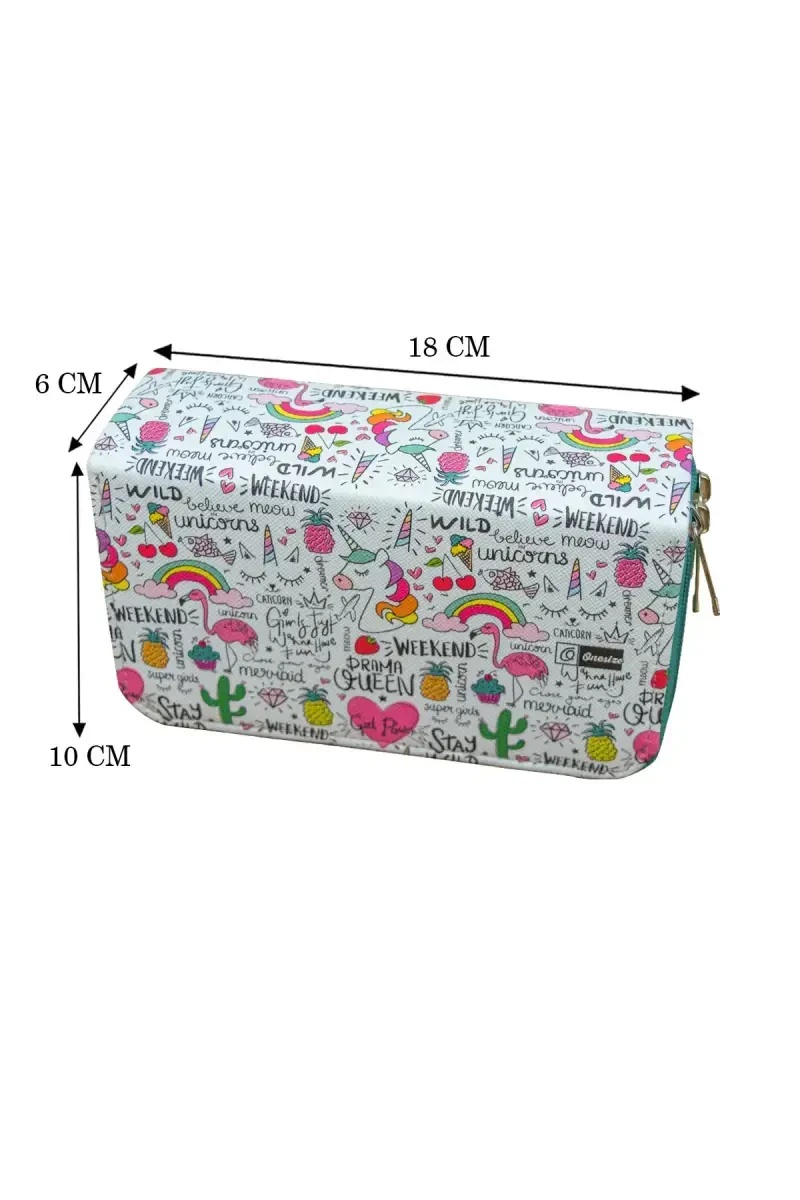Unicorn Qalam qutisi | Vegan charm, 3 qismli, Kawaii uslubi