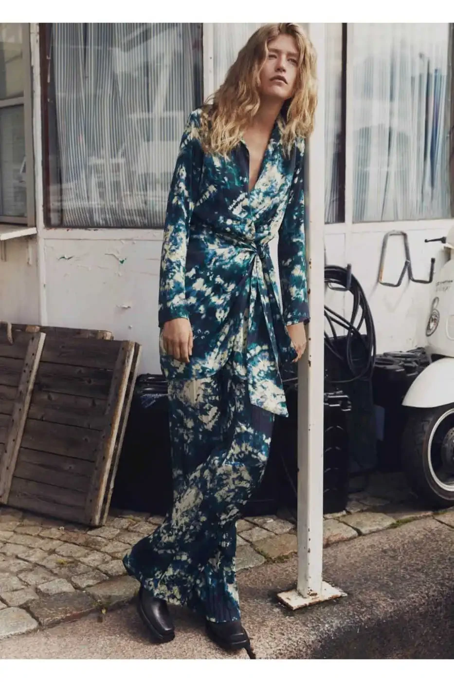 Plisli Batik Shtanlar, 100% Polyester, Trendyol, Total Look, Uzun Model, Keng Shimlar, Batik Naqsh