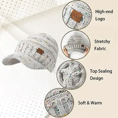 Қиш ойларининг ажралмас қисми бўлган замонавий ва илиқ бош кийим излаётган бўлсангиз, Winter Hats for Women - Thick Warm Stylish Knit Beanie Hat, Soft Stretch Cute Womens Winter Hats with Visor сиз учун жуда мос келади! 100% юқори сифатли акрил ипларидан тайёрланган бу бош кийим жуда юмшоқ, чидамли, терига ёқимли ва қулайдир. Айниқса, куз ва совуқ қиш ойлари учун ажойиб бўлган бу бош кийим сизга узоқ вақт давомида илиқлик ва қулайлик бахш этади. Бетакрор дизайни билан сизнинг услубингизни акс эттирар экан, шу билан бирга сизни совуқ ва қуёшдан ҳимоя қилади. Юқори эластиклиги туфайли кўпчиликнинг бош айланасига мос келади ва қулоқларингизни тўлиқ ёпиб, бошингизни илиқ ва қулай сақлайди. Қуёшдан ҳимоя қилиш учун мўлжалланган козырьки билан очиқ ҳаводаги фаолиятларда ҳам бемалол фойдаланишингиз мумкин. Тез тайёрланишингиз керак бўлганда, сочингиз билан овора бўлишга вақтингиз бўлмаса, бу замонавий ва амалий бош кийим сиз учун жуда мос келади. Қишки кийимларингиз билан мукаммал уйғунликка эга бўлган бу бош кийим кундалик фойдаланишда, чанғи, чарс, сноуборд, қишки таътил, лагерь, пиёда юриш каби кўплаб фаолиятларда сизни илиқ ва замонавий сақлайди. Туғилган кунлар, Рождество ва Янги йил каби байрамларда яқинларингизга замонавий ва фойдали совға сифатида ҳам тақдим этишингиз мумкин. Бу бош кийим ҳам замонавийликни, ҳам функционалликни бирлаштириб, совуқ қиш кунларида илиқ ва услубли бўлишингизни таъминлайди.