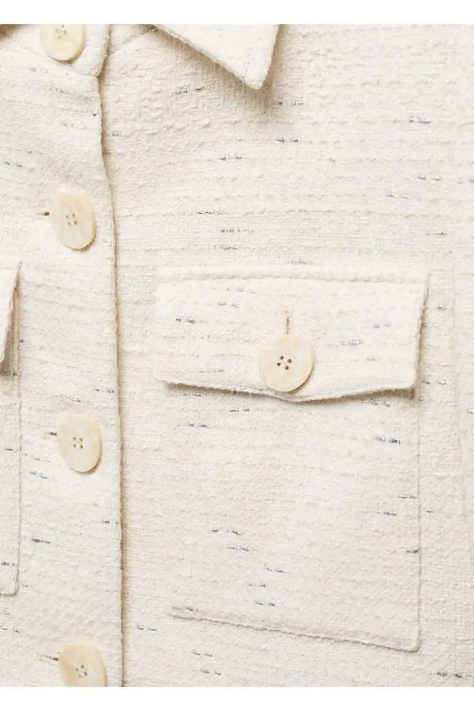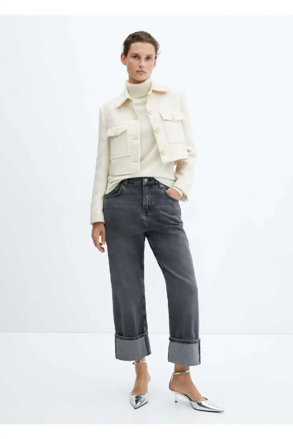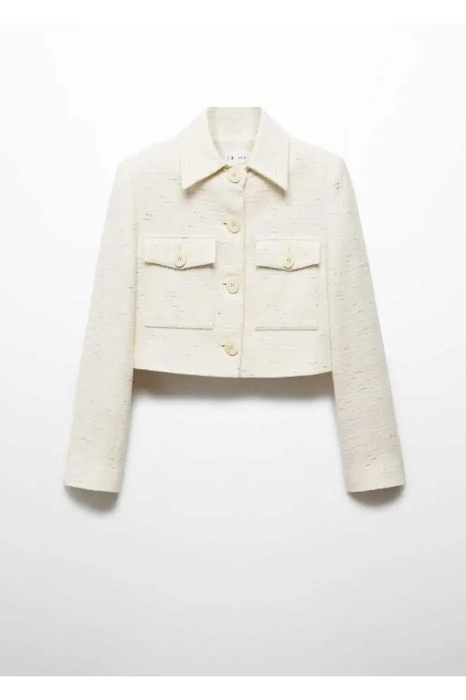 Qisqa tvid kurtka cho'ntagi sovuq havoda zamonaviy va qulay uslub uchun ideal tanlov. Uzun qo'llari bilan fasllar o'tishida qulaylikni ta'minlaydi, amaliy tugmali yopilishi esa uni osongina kiyib olish imkonini beradi. Oddiy va zamonaviy ko'rinishi bilan har qanday kiyim bilan uyg'unlasha oladigan tekis naqshli dizayni zamonaviy va nafis ko'rinish uchun tugmali detallar bilan to'ldiriladi.