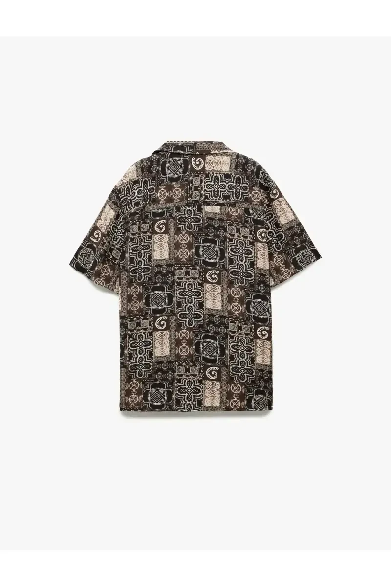 Etnik naqshli viskoza ko'ylak - Kalta yengli qaytarma yoqa