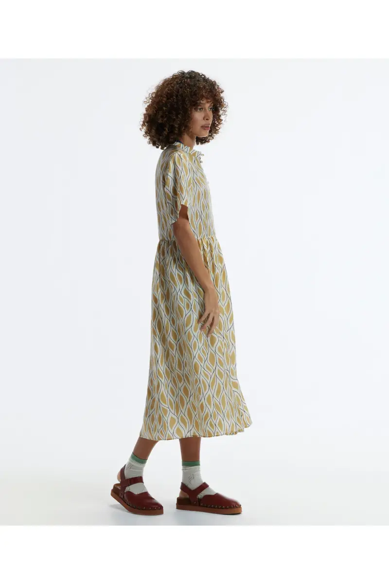 Qisqa Yengli Tugmali Midi Ko'ylak uslubi, qulayligi va ko'p qirraliligi bilan ajralib turadi. Turli muhitlarda kiyilishi mumkin bo'lgan bu ko'ylak har bir ayolning shkafida bo'lishi kerak bo'lgan qismdir.