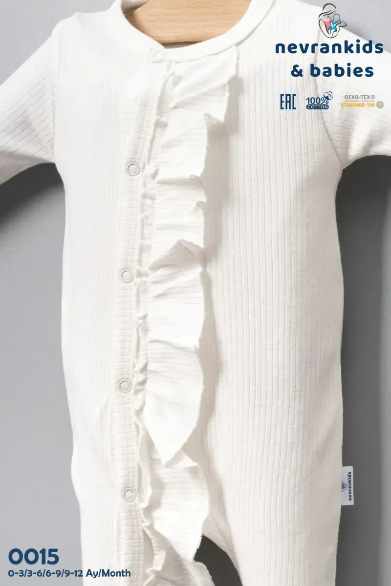 Qiz bola fitilli frfirli tulum | 100% paxta, uzun yengli, ekru rang