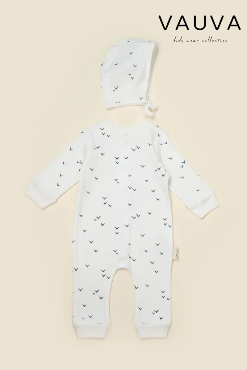 Bebek Tulumi (3-24 Oy) - Shapkalik, Paxtalik, Mavsumiy - Qiz & O'g'il Bolalar Kiyimi - Oq Tulum - Turkiya Ishlab chiqarilgan