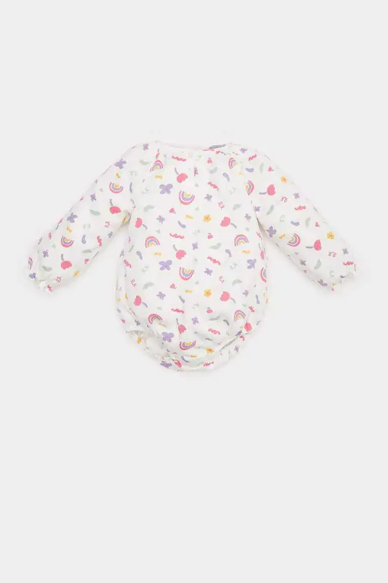 Chaqaloq bodysi, Yangi tug'ilgan, Kamalakli bosma, Vafli, Velosiped yoqali, Paxta, Qo'shimchali, Ekru, Uzun yengli, Qulay