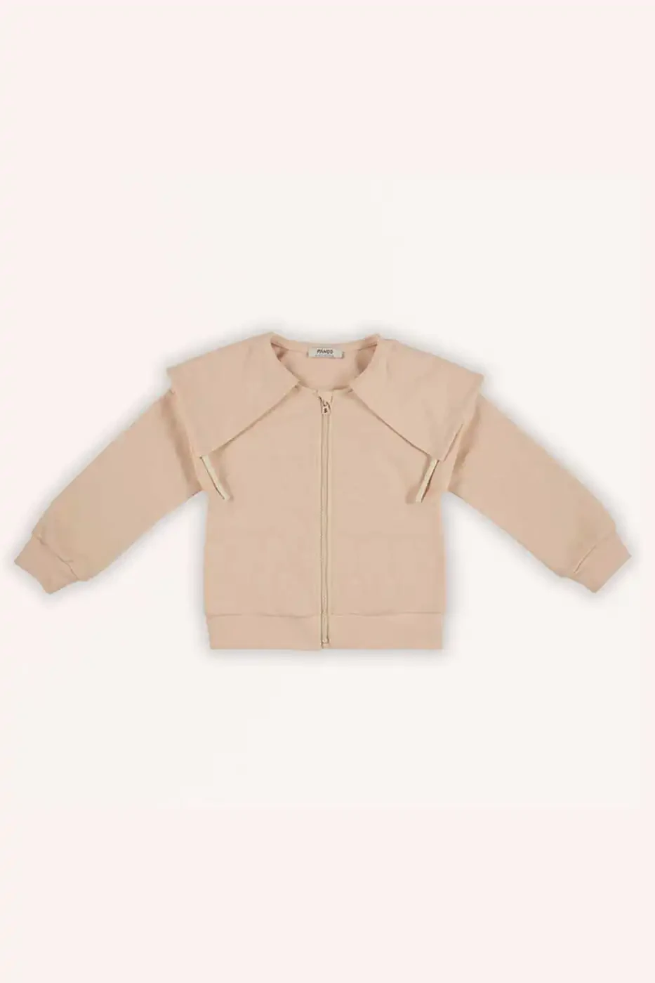 Qiz bolalar sviti, losos sweatshirt, keng yoqali, fermuarli svit, bolalar kiyimi, qulay sweatshirt, qiz bolalar modasi, kundalik kiyim, zamonaviy bolalar kiyimi, losos rangi