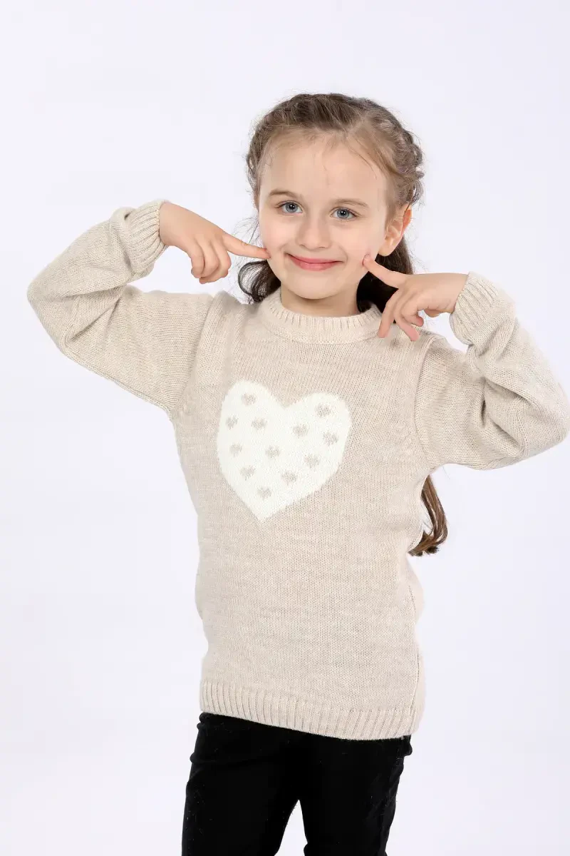 Qiz bola kozok, triko kozok, bej kozok, regular fit kozok, bolalar kiyimi, qiz bolalar kiyimi, basic kozok, kundalik kozok, chiroyli kozok, triko bola