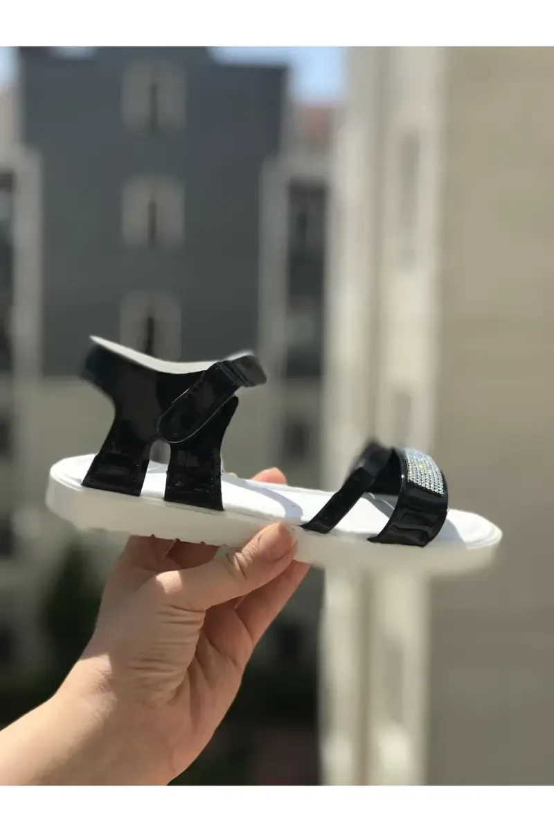 Qiz bolalar sandaleti, toshli sandalet, qora sandalet, moda sandaleti, yengil sandalet, yozgi sandalet, bolalar sandaleti, sozlanishi mumkin bo'lgan sandalet, qulay sandalet, hashamatli sandalet