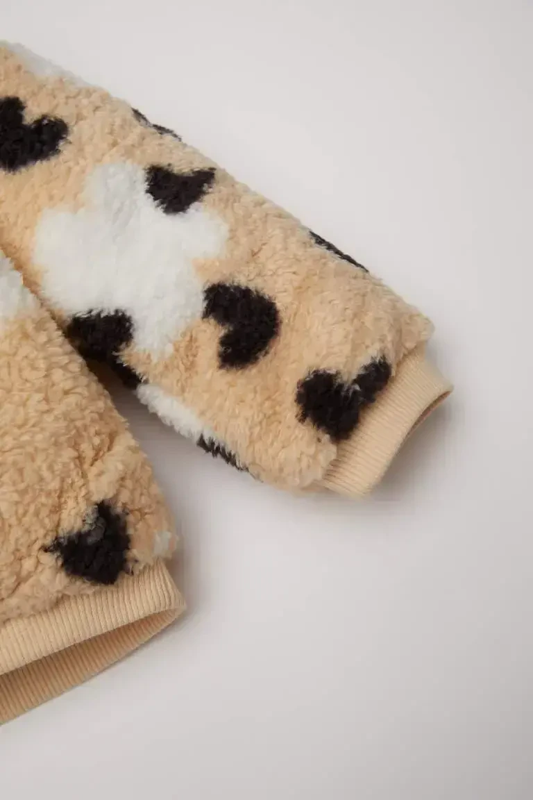 Qiz bola yurak naqshli plyush svitshot | Defacto Velosiped yoqali issiq tutadigan tukli ustki kiyim