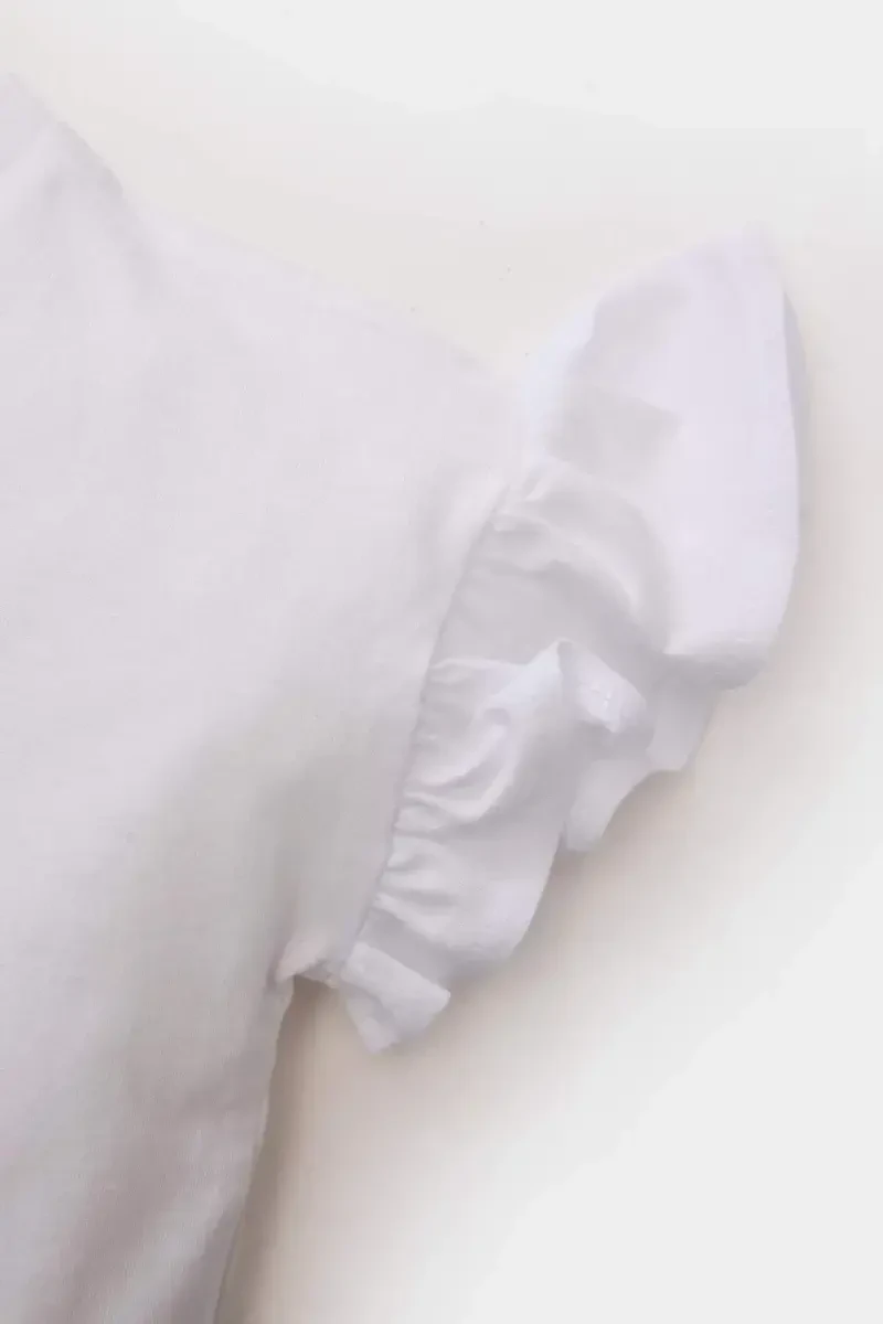 Paxta matosidan ishlab chiqarilgan. Velosiped yoqali. Qisqa yengli. Gullar bosilgan.