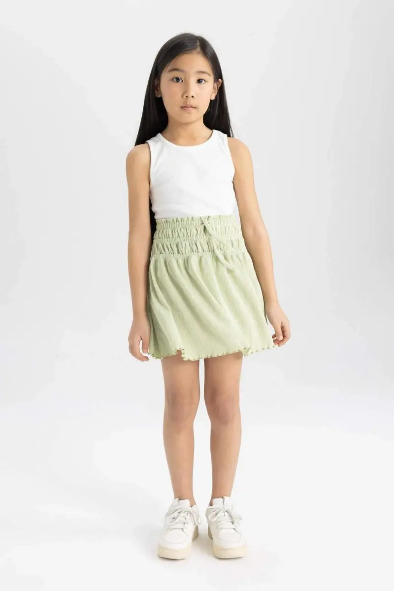 Qiz bolalar uchun burmalar bilan yubka C2996a824sm turli xil ranglar va naqshlarda mavjud. Siz o'zingizning kichkina malikaniz uchun unga eng mos keladigan rang va naqshni tanlab, shkafini nafislik bilan bezashingiz mumkin.