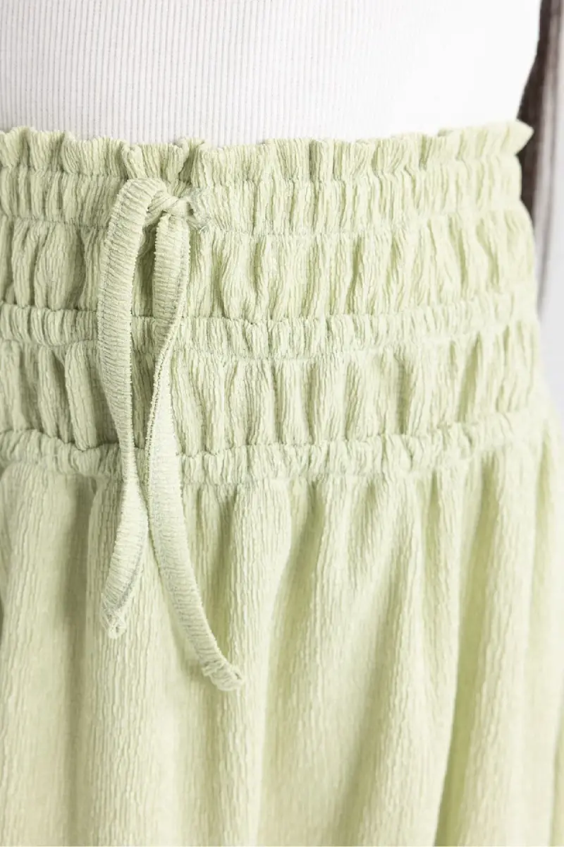 Yubkaning burmalar bilan bezatilgan dizayni, sizning kichkina qizingizning harakatlanish erkinligini cheklamagan holda, nafis ko'rinish beradi. Yengil va yumshoq to'qimasi tufayli chaqaloqlaringiz kun bo'yi erkin harakatlanishi va o'ynashi mumkin.