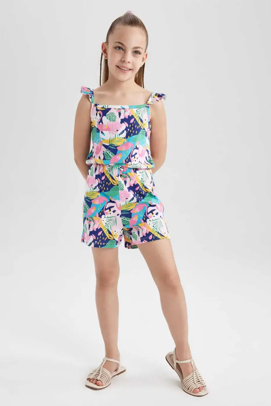 Qiz bolalar uchun naqshli yelkali paxta qisqa kombinezon T2733a623hs bilan qizingizning kunlarini rang-barang qiling!