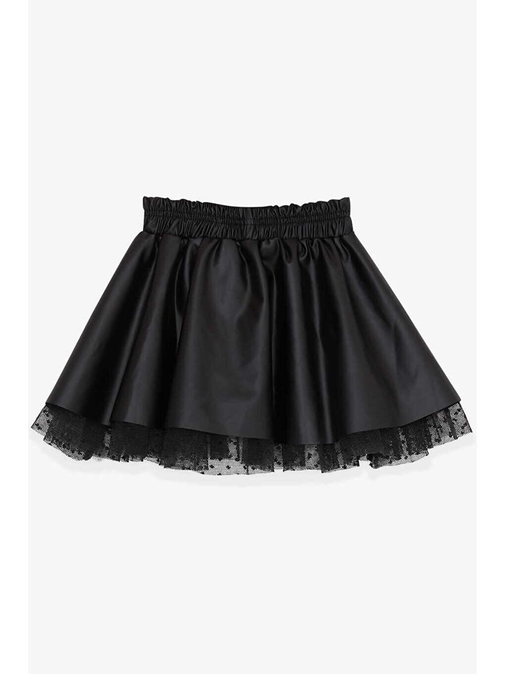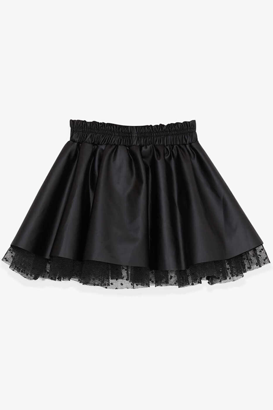 Qiz bolalar uchun sun'iy teri yubka tülli qora bilan qizingizning uslubi va nafisligini ta'kidlang!