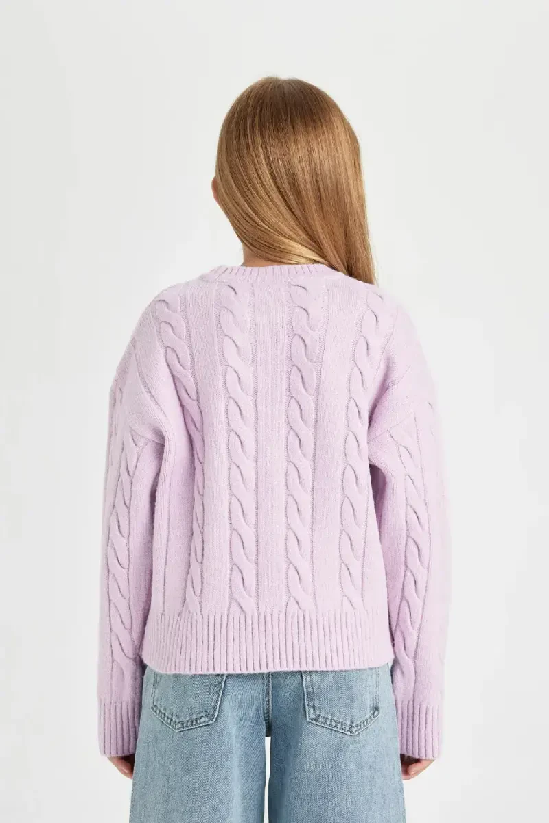 Qiz bolalar kozok, trikotaj kozok, velosiped yoqali, soch o'rilgan, binafsha kozok, bolalar kiyimi, sovg'a, qishki kozok, uzun yengli, qulay kozok
