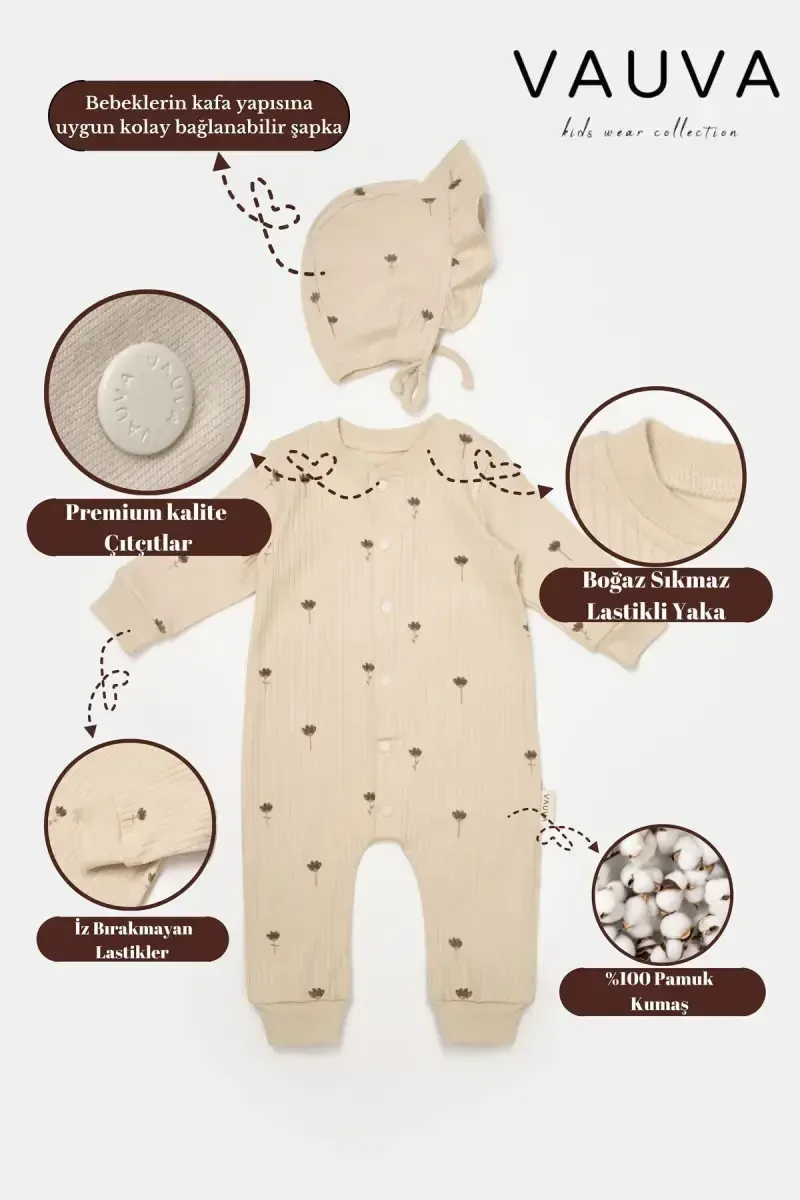 Bizning romperimiz amaliy fermuar tufayli, chaqalog'ingiz qulay harakatlanishi uchun va oson kiyish uchun mo'ljallangan keng bo'yin qismi bilan kundalik foydalanish uchun idealdir. Bundan tashqari, mavsumiy shlyapa bilan chaqalog'ingizni salqin yoki issiq havoda himoya qilishingiz mumkin.
