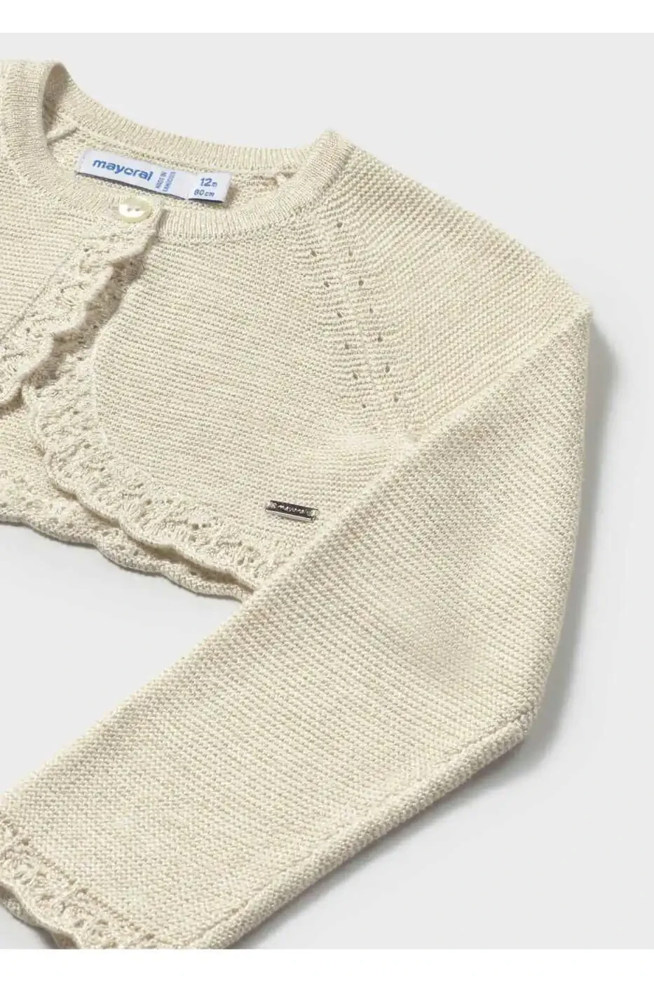 Qizcha uchun Bej Merserizatsiyalangan Bolero bilan chaqalog'ingiz har doim zamonaviy va qulay bo'lsin!