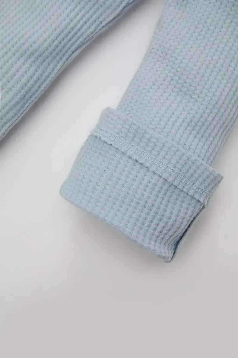 Qiz chaqaloqlar uchun ispancha oyoqli Waffle taytlari har kuni foydalanish uchun ideal tanlovdir. Ularni chaqalog'ingizning kiyimlari bilan osongina uyg'unlashtirish mumkin, har qanday faoliyatda zamonaviy va qulay ko'rinish beradi. Bundan tashqari, u chaqalog'ingizning terisini tirnash xususiyatiga ega bo'lmaydigan nozik matodan tayyorlangan.