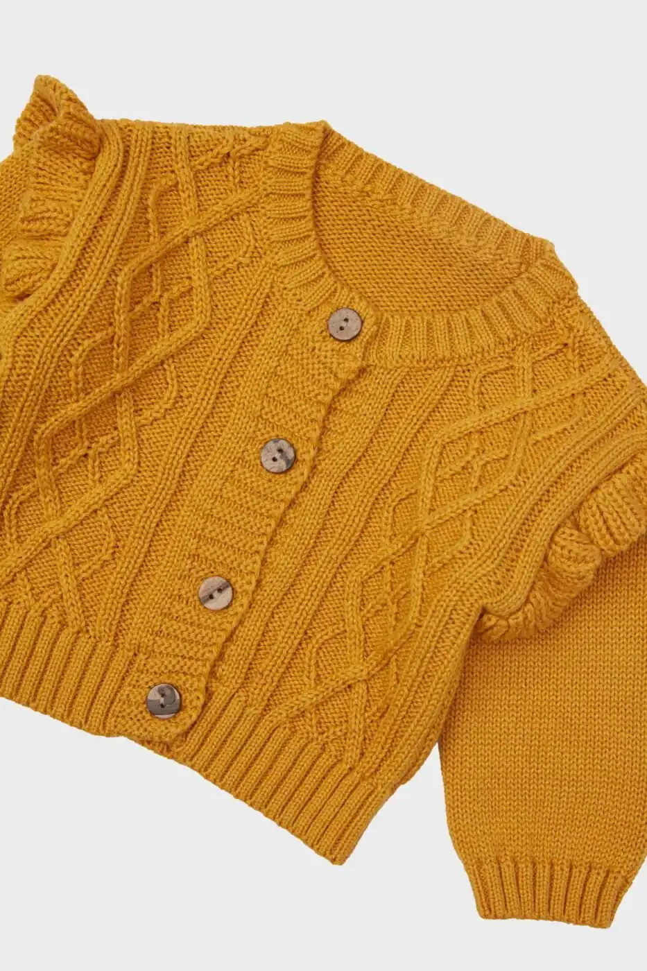 Chaqalog'ingizning qulayligi va uslubi uchun ideal tanlov bo'lgan Qizcha uchun sariq kardigan, hozir siz bilan!