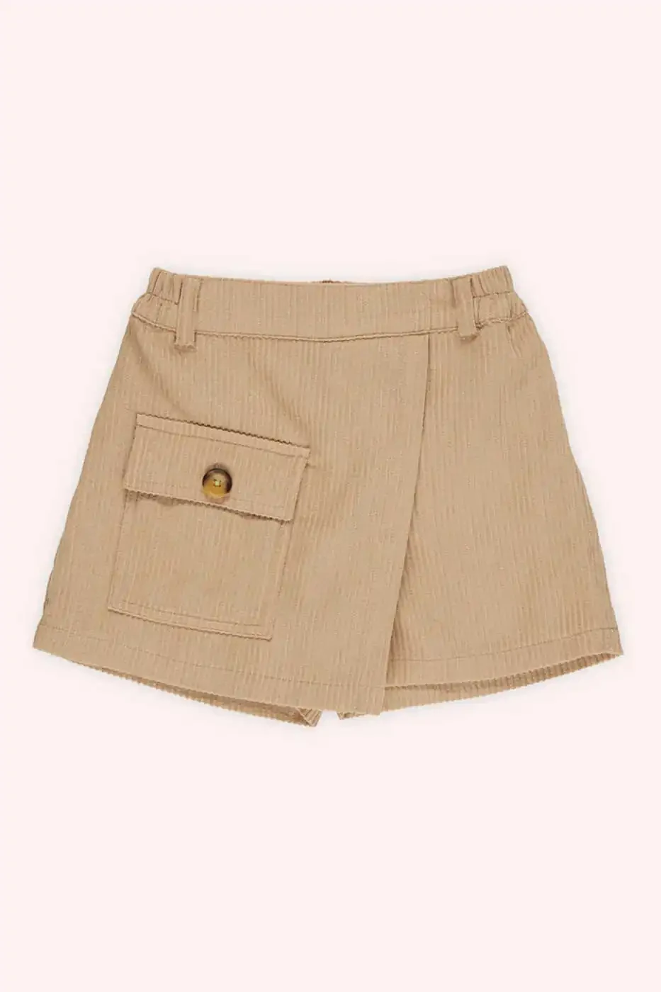Go'dak qiz bolalar uchun yumshoq bej rangli shortik yubka - bu yoz oylarida bolangizning qulay va zamonaviy ko'rinishini ta'minlaydigan ajoyib tanlovdir. U kundalik kiyim va maxsus kunlar uchun ideal tanlovdir. Yoz oylarida bolalaringiz o'zlarini maxsus his qilishlari uchun bu shortik yubkalar bilan kombinatsiyalaringizni to'ldiring!