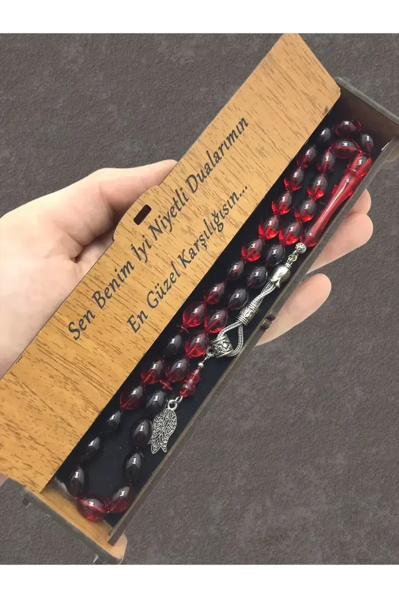 Qizil Qora Yog'och Tasbeh | Jilvali Qutidagi Chiroyli Dizayn