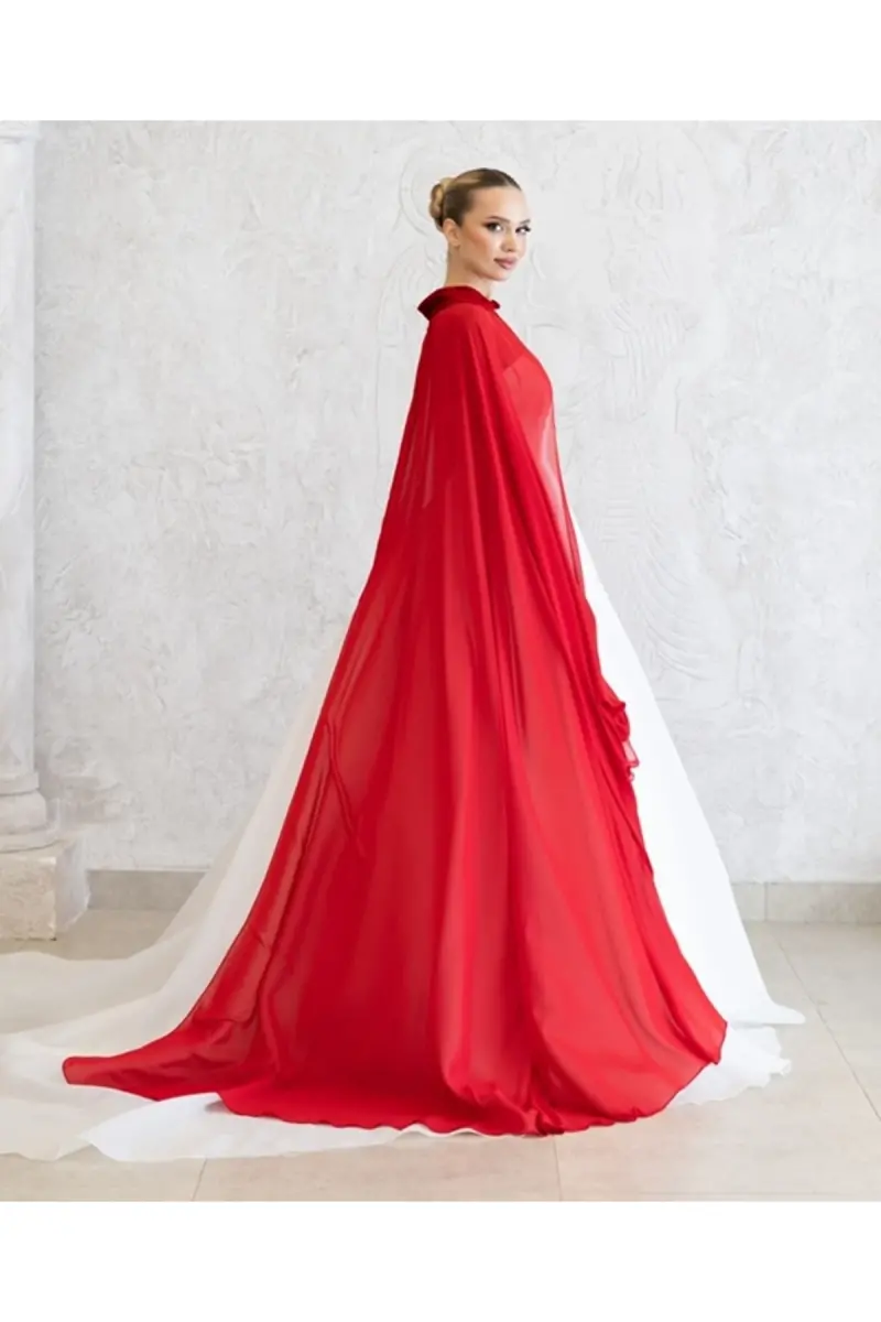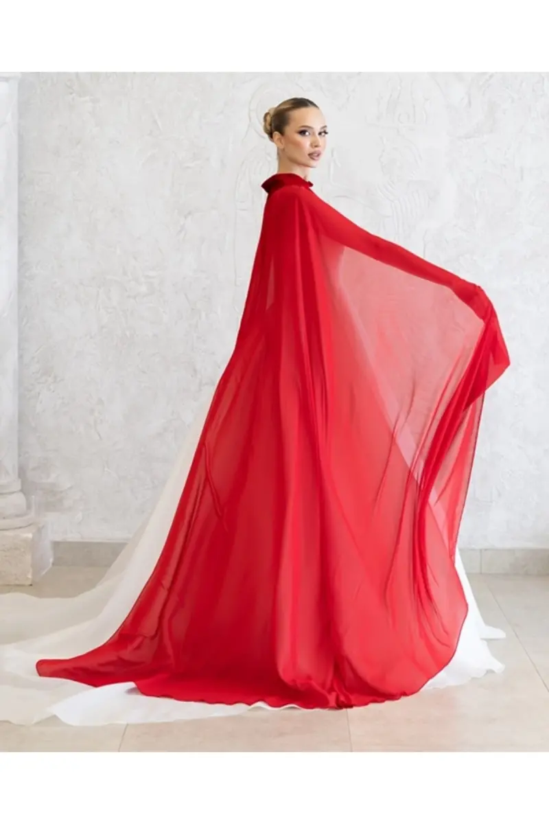 Qizil Shifon Kaftan - Kelinlik Ustki Pelerin - Bindallı - Xina Ko'ylak
