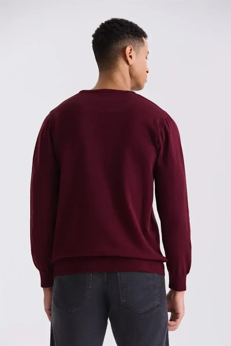 slim fit triko kozok, velosiped yoqali kozok, burgundiya kozok, 50% paxta, 50% akril
