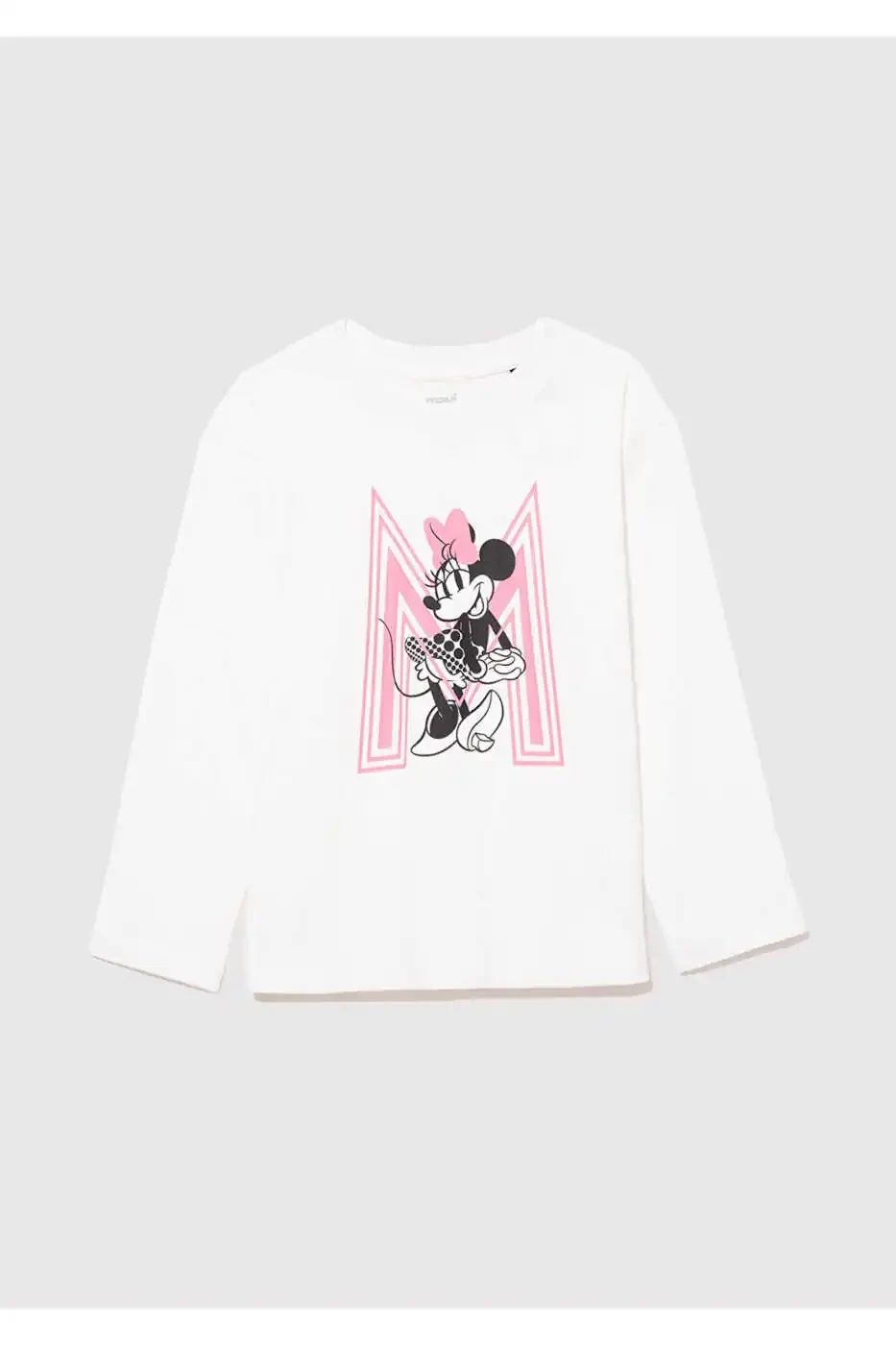Mavi Qizlar uchun Svet, Minnie Mouse bosmali svet, oq qizlar uchun svet, regular fit svet, uzun qo'lli svet, 100% paxtadan tayyorlangan svet