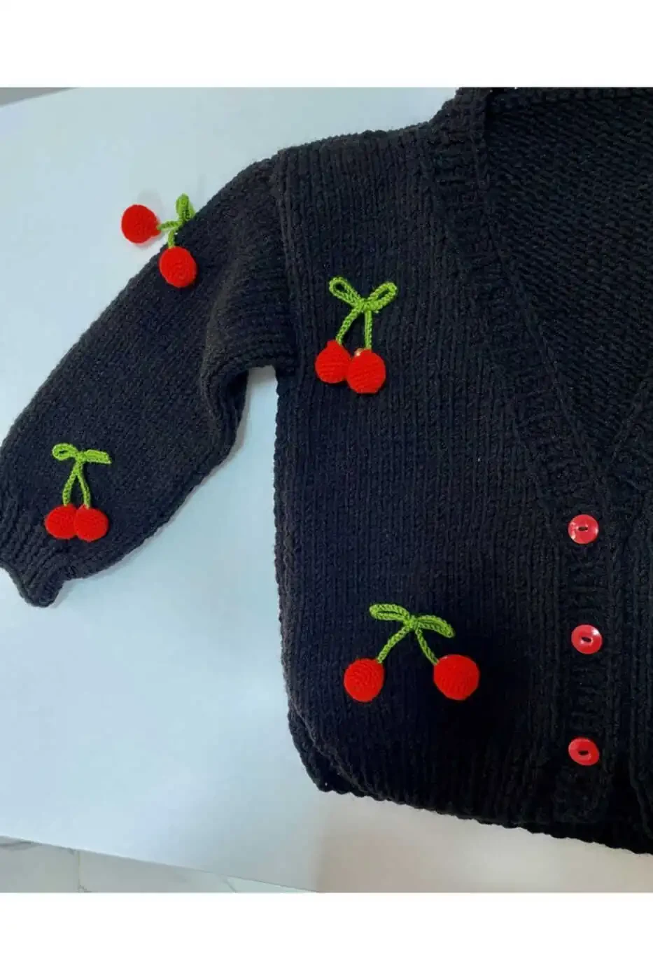Qo'l bilan to'qilgan gilosli chaqaloq ko'ylagi - Chaqaloq kiyimlari
