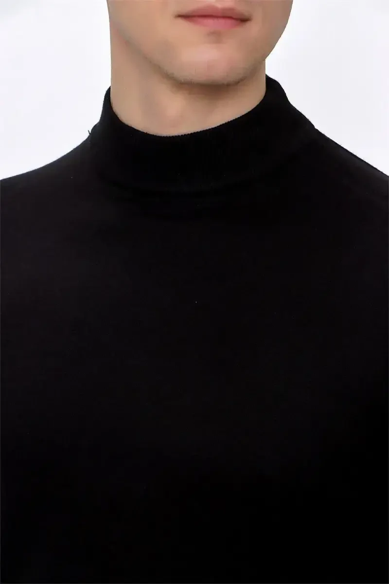 Qora yarim balandroq bo'yinli trikotaj kozok | Qulay bichim, zamonaviy dizayn