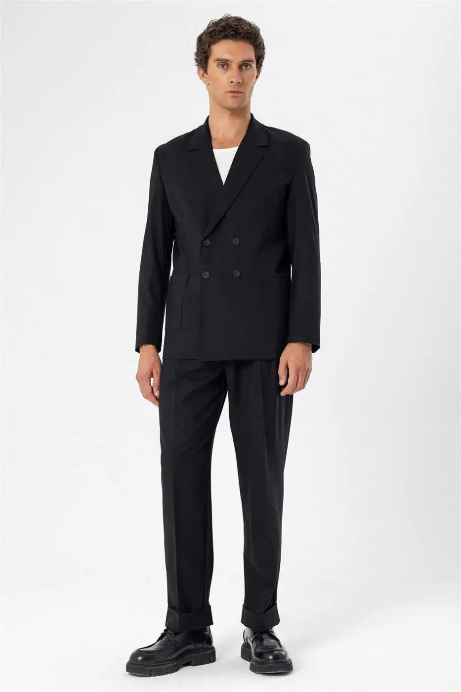 Qora cho'ntakli ikki qavatli erkaklar blazer ko'ylagi - bu zamonaviy uslub va qulaylikni birlashtirgan kiyim, u sizning shkafingizning ajralmas qismiga aylanadi. Uning oqlangan ikki qavatli yoqasi va klassik kesimi har qanday muhitda o'ziga jalb qiluvchi uslub yaratish imkonini beradi. Bu ko'ylak kundalik kiyimdan tortib to'y marosimlariga qadar har qanday tadbir uchun idealdir.