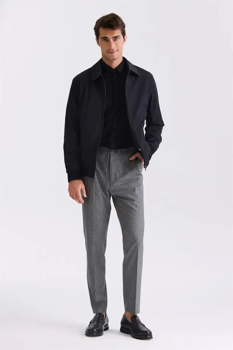 Qora rangli, qulay kassadi kiyimli, beba yoqali mavsumiy pardagi sizning shkafingizga uslub va qulaylik olib keladi.