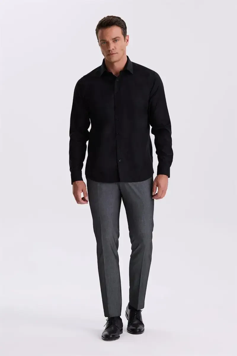 Dastaksiz, 100% paxtadan tayyorlangan Siyoh Comfort Fit ko'ylak