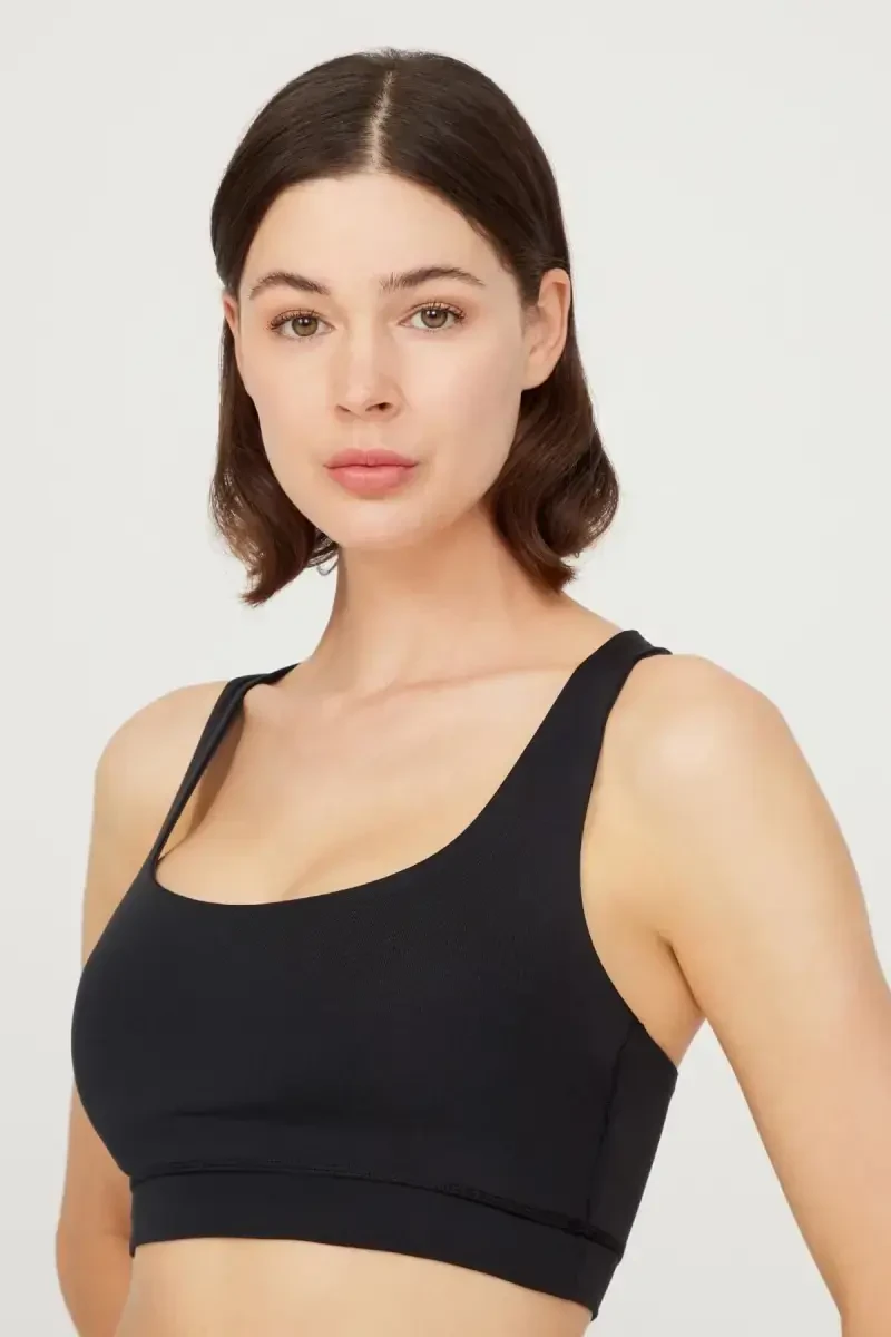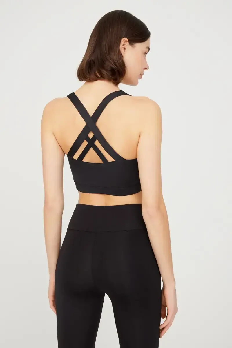 sport bra, yengil qo'llab-quvvatlash, orqa detal, qora sport bra, qulay sport bra, yoga, yugurish, kundalik foydalanish