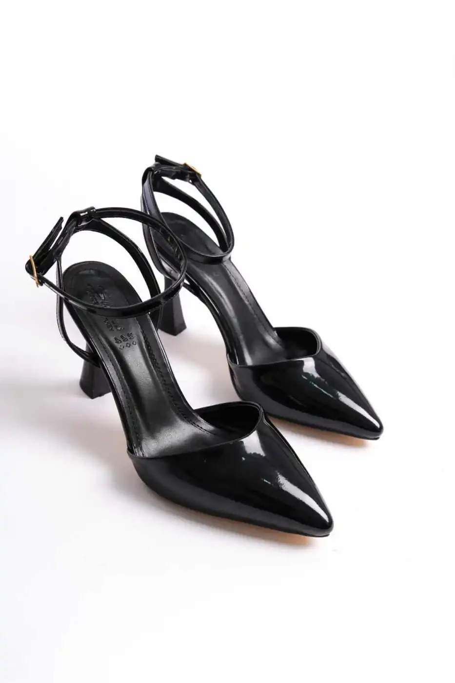 Nafislik va o'ziga xoslikni birlashtirgan qora lakli ayollar yuqori poshnali oyoq kiyim o'tkir burunli dizayni va oqlangan to'qmoqli bezagi bilan e'tiborni tortadi. Yuqori poshnali tufayli har qadamda o'zingizni balandroq va nafisroq his qilasiz.