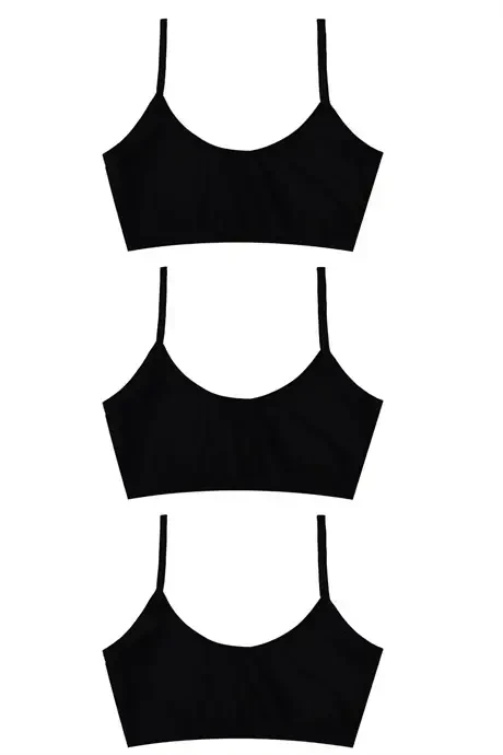 Qora qiz bolalar uchun matosiz paxtadan tayyorlangan yarim mashq futbolka shaklidagi sudyen (3 dona)