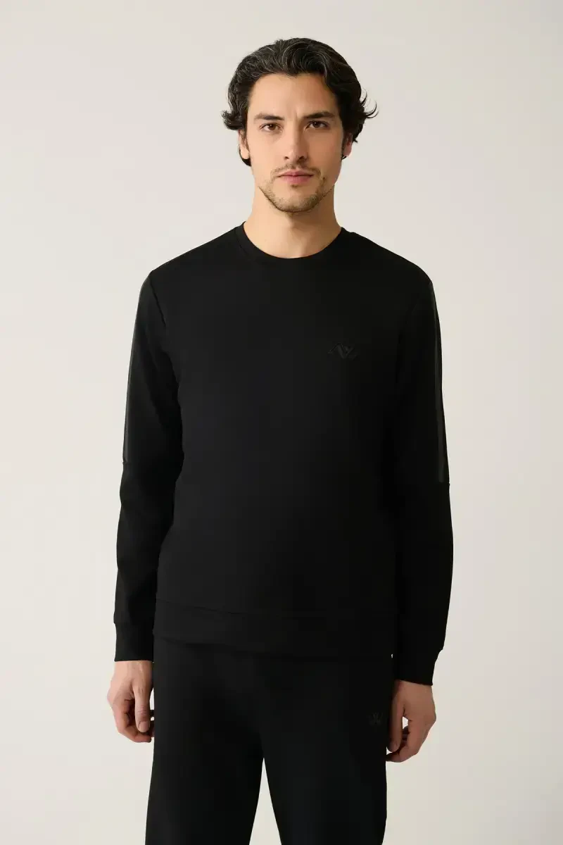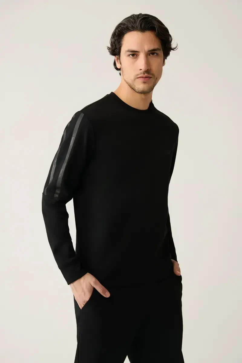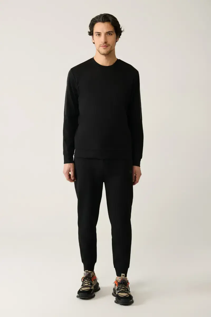 Erkaklar uchun qora rangli krujka bo'yinli Interlok bosma oddiy mos keladigan futbolka A41y1203 bilan uslubingizni aks ettiring, qulaylikdan bahramand bo'ling!