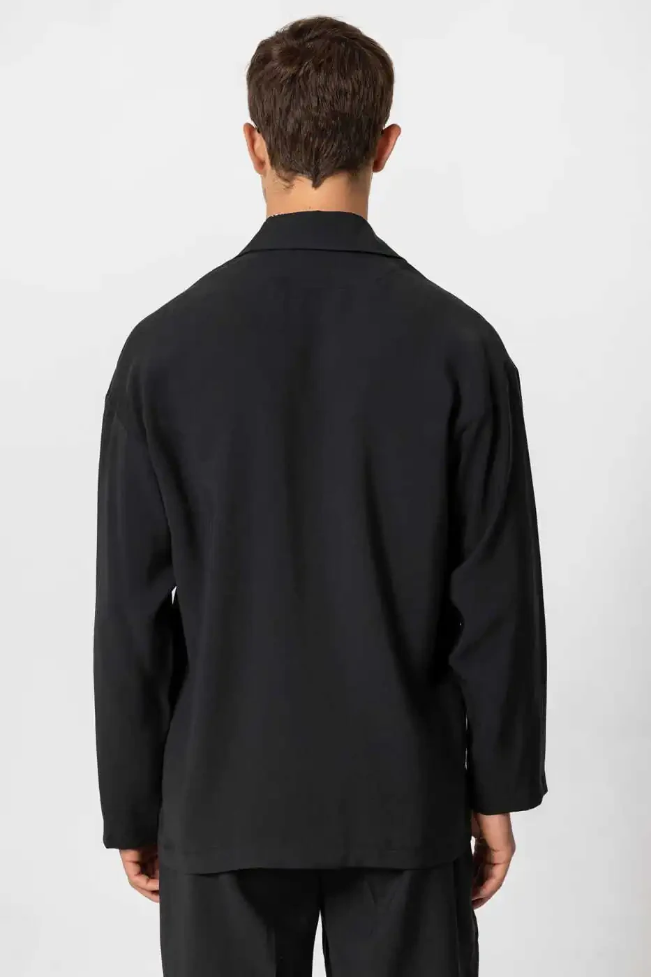 Qora Oversize Astarsiz Erkak Blazer Ko'ylagi