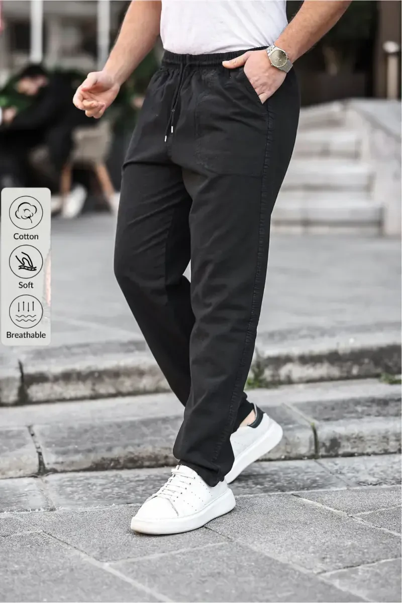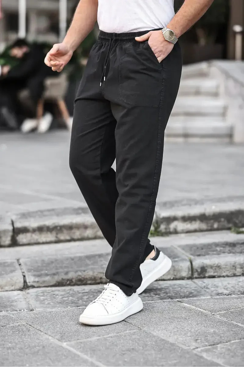 Issiq yoz kunlarida zamonaviy va qulay ko'rinish uchun qora rangli erkaklar yozgi zig'ir aralashmasi erkin shimni tanlang!