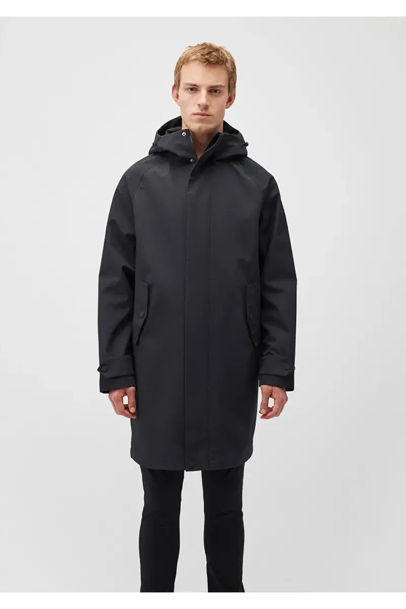 Qora rangli kaputli, bo'sh kesilgan uzun palto. 0110430-900
