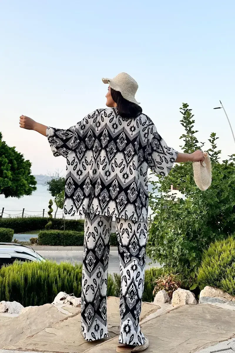 Qora rangli naqshli ikkita kimono to'plami nafislik va qulaylikni birlashtirgan noyob dizaynga ega. Ipli tomonidan sevgi bilan tayyorlangan ushbu to'plam sizning garderobingizning ajralmas qismiga aylanishga nomzod. Keng oyoqli dizayni kun bo'yi qulay harakatlanish erkinligini ta'minlaydi, kimono va shimdan iborat kombinatsiyasi esa har doim nafis va muvofiq ko'rinishga ega bo'lishingizni ta'minlaydi. Har qanday yoshdagi odamlarga murojaat qiladigan ushbu to'plam o'zining naqshli tuzilishi bilan diqqatga sazovor uslub yaratishga yordam beradi, moslashuvchan matosi esa kun bo'yi qulay foydalanishni ta'minlaydi. Uzun qisma kimono mavsumiy o'tishlar uchun ideal tanlov bo'lib, katta hajmli kesimi zamonaviy va qulay siluet yaratadi. Paxta va poliester aralashmasidan tashkil topgan material mahsulotning chidamliligini oshiradi, shu bilan birga terining nafas olishiga imkon beradi. Ajinli to'qimachilik turi to'plamga nafis tekstura berib, estetik ko'rinish beradi. Oson parvarishlash imkoniyatini taqdim etadigan yuvish bo'yicha ko'rsatmalar uzoq muddatli foydalanish uchun idealdir. Cho'ntak tafsilotlari funksionallikni qo'shsa, nozik tuzilishi uning engilligini ta'kidlaydi. Kundalik sharoitda kundalik foydalanish uchun mukammal tanlov bo'lgan ushbu to'plam yoshlarning energiyasiga mos dinamik uslubni taqdim etadi. Kampaniya narxida sotish uchun cheklangan miqdorda mavjud. E'tibor bering, siz ushbu mahsulotdan ko'pi bilan 10 dona buyurtma berishingiz mumkin. Trendyol ushbu belgilangan limitdan oshib ketgan buyurtmalarni bekor qilish huquqini o'zida saqlab qoladi. Korporativ buyurtmalar uchun turli xil chegaralar belgilanishi mumkin. Agar mahsulotdan mamnun bo'lmasangiz, 15 kun ichida bepul qaytarib berish imkoniyatidan foydalanishingiz mumkin. Batafsil ma'lumot olish uchun qaytarish shartlarini ko'rib chiqing.